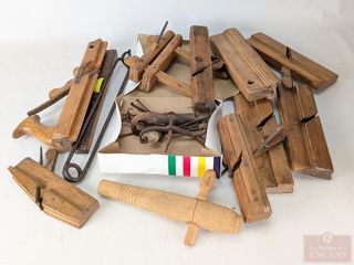 | #176 | Lot d'anciens rabots datant du 19eme siècle et autres outils d'ébénisterie Lot d'anciens rabots datant du 19eme siècle et autres outils d'ébénisterie | ||