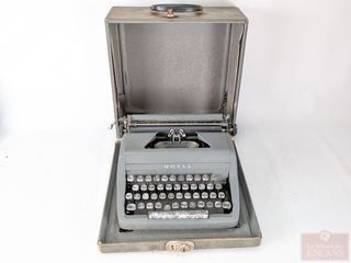 | #147 | Machine à écrire Royal modèle Commander, datant des années 1940 et mesurant 11.5 pouces, dans sa valise de transport Machine à écrire Royal modèle Commander, datant des années 1940 et mesurant 11.5 pouces, dans sa valise de transport | ||