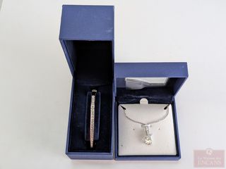 | #220 | Pendentif et bracelet Swarovski, le bracelet mesurant 2.5 pouces de largeur, dans leurs boites Pendentif et bracelet Swarovski, le bracelet mesurant 2.5 pouces de largeur, dans leurs boites | ||