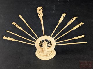| #223 | Ensemble de cure-dents avec son support, le tout sculpté sur ivoire, le support mesurant 2 pouces de hauteur Ensemble de cure-dents avec son support, le tout sculpté sur ivoire, le support mesurant 2 pouces de hauteur | ||