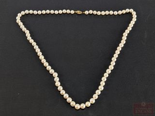 | #75 | Collier de perles nouées 6mm avec fermoir en or 14k, mesurant 25 pouces de longueur Collier de perles nouées 6mm avec fermoir en or 14k, mesurant 25 pouces de longueur | ||