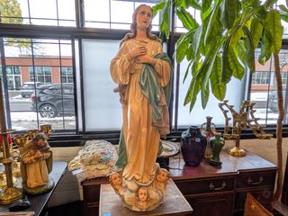 | #18 | Plâtre signé A.D. et peint à la main, représentant Notre-Dame-de-l '-Assomption, datant du 20eme siècle et mesurant 40 pouces de hauteur Plâtre signé A.D. et peint à la main, représentant Notre-Dame-de-l '-Assomption, datant du 20eme siècle et mesurant 40 pouces de hauteur | ||