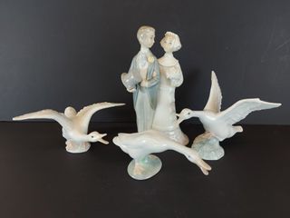 | #21 | Lot de porcelaines Lladro dont trois oies et une couple de mariés mesurant 8 pouces de hauteur Lot de porcelaines Lladro dont trois oies et une couple de mariés mesurant 8 pouces de hauteur | SOLD – CAD$ 60.00 | |