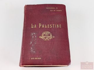 | #70 | Livre 'La Palestine' datant de 1912, deuxième édition originale, annotée et signée - guide historique et pratique avec soixante-douze cartes et plans nouveaux, par les professeurs de N-D de France à Jérusalem. Enrichi de nombreuses cartes et augmenté de la description de la Syrie, de Naples, d'Athènes, de Constantinople (Turquie actuelle) et de l'Égypte, le livre mesurant 6.25x4.25x1.75 pouces Livre 'La Palestine' datant de 1912, deuxième édition originale, annotée et signée - guide historique et pratique avec soixante-douze cartes et plans nouveaux, par les professeurs de N-D de France à Jérusalem. Enrichi de nombreuses cartes et augmenté de la description de la Syrie, de Naples, d'Athènes, de Constantinople (Turquie actuelle) et de l'Égypte, le livre mesurant 6.25x4.25x1.75 pouces | SOLD – CAD$ 90.00 | |