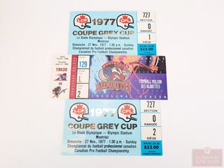 | #61 | Billet de la saison inaugurale des Alouettes de Montréal 13 juin 1996, ainsi que deux billets de la Coupe Gray de 1977 au Stade Olympique | SOLD – CAD$ 20.00 | |
