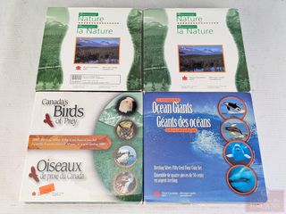 | #147 | Ensemble de quatre coffrets numismatiques canadiens contenant pièces cinquante sous en argent sterling, comprenant Oiseaux de proie du Canada 2000, Géants des océans 1998, Petits de la grande nature 1996 et Les meilleurs amis du Canada 1997 Ensemble de quatre coffrets numismatiques canadiens contenant pièces cinquante sous en argent sterling, comprenant Oiseaux de proie du Canada 2000, Géants des océans 1998, Petits de la grande nature 1996 et Les meilleurs amis du Canada 1997 | SOLD – CAD$ 280.00 | |