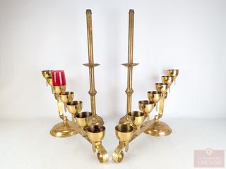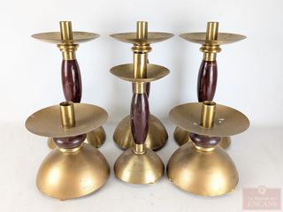 | #158 | Lot de chandeliers d'église en laiton doré et bois, les plus grands mesurant 16 pouces de hauteur (très lourds) Lot de chandeliers d'église en laiton doré et bois, les plus grands mesurant 16 pouces de hauteur (très lourds) | SOLD – CAD$ 45.00 | |