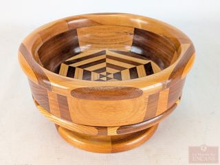 | #183 | Centre de table bois précieux tourné avec motifs géométriques, mesurant 9 pouces de diamètre Centre de table bois précieux tourné avec motifs géométriques, mesurant 9 pouces de diamètre | SOLD – CAD$ 25.00 | |