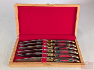 | #230 | Ensemble de couteaux à steak laguioles, dans leur coffret mesurant 10.25 pouces Ensemble de couteaux à steak laguioles, dans leur coffret mesurant 10.25 pouces | SOLD – CAD$ 110.00 | |