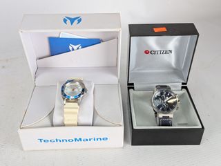 | #39 | Montre Technomarine ainsi que montre August chronographe (besoin de nouvelles batteries) Montre Technomarine ainsi que montre August chronographe (besoin de nouvelles batteries) | SOLD – CAD$ 75.00 | |