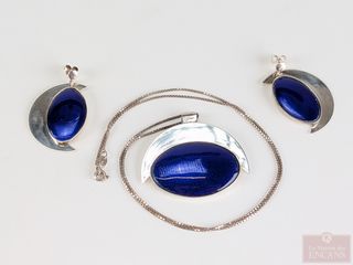 | #198 | Ensemble de bijoux modernistes en argent sterling signés JPA, comprenant paire de boucles d'oreilles, chaine et pendentif, la chaine mesurant 20 pouces Ensemble de bijoux modernistes en argent sterling signés JPA, comprenant paire de boucles d'oreilles, chaine et pendentif, la chaine mesurant 20 pouces | SOLD – CAD$ 40.00 | |