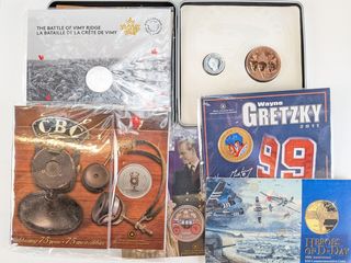 | #203 | Lot numismatique canadien comprenant vingt-cinq sous Wayne Gretzky, 60eme anniversaire de la victoire de la seconde guerre mondiale, Titanic, pièce lenticulaire et autres Lot numismatique canadien comprenant vingt-cinq sous Wayne Gretzky, 60eme anniversaire de la victoire de la seconde guerre mondiale, Titanic, pièce lenticulaire et autres | SOLD – CAD$ 65.00 | |