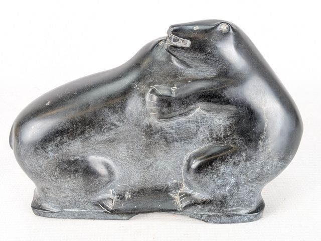 | #221 | George KALUAPIF- Sculpture inuite sur pierre à savon, signée, représentant un béluga et mesurant 8 pouces George KALUAPIF- Sculpture inuite sur pierre à savon, signée, représentant un béluga et mesurant 8 pouces | SOLD – CAD$ 55.00 | |