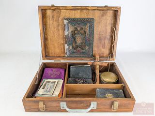 | #10 | Ensemble de voyage comprenant contenant à hosties et divers accessoires nécessaires au derniers sacrements, le coffret mesurant 18 pouces Ensemble de voyage comprenant contenant à hosties et divers accessoires nécessaires au derniers sacrements, le coffret mesurant 18 pouces | SOLD – CAD$ 30.00 | |