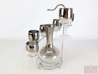 | #142 | Ensemble de verres et carafe Dorothy Thorpe, avec support mesurant 13 pouces de hauteur Ensemble de verres et carafe Dorothy Thorpe, avec support mesurant 13 pouces de hauteur | SOLD – CAD$ 45.00 | |