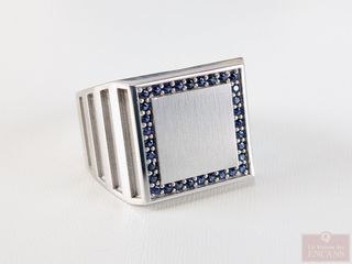 | #192 | Bague en argent sterling faite sur-mesure, sertie de multiples saphirs et signée OSA, taille 9.25 Bague en argent sterling faite sur-mesure, sertie de multiples saphirs et signée OSA, taille 9.25 | SOLD – CAD$ 60.00 | |
