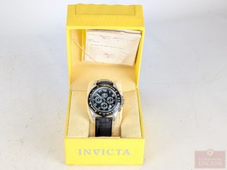| #69 | Montre Invicta chronographe au quartz, mesurant 47.5 millimètres avec sa couronne, dans sa boite avec batterie neuve, fonctionnelle Montre Invicta chronographe au quartz, mesurant 47.5 millimètres avec sa couronne, dans sa boite avec batterie neuve, fonctionnelle | SOLD – CAD$ 50.00 | |