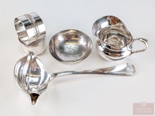 | #187 | Lot d'argenterie Christofle comprenant ronds de serviettes, saucier et autres, la cuillère mesurant 7.5 pouces Lot d'argenterie Christofle comprenant ronds de serviettes, saucier et autres, la cuillère mesurant 7.5 pouces | SOLD – CAD$ 50.00 | |