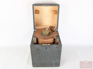 | #153 | Ancien alambique en cuivre datant du 19eme siècle, dans son coffre mesurant 12.5 pouces de hauteur Ancien alambique en cuivre datant du 19eme siècle, dans son coffre mesurant 12.5 pouces de hauteur | SOLD – CAD$ 110.00 | |