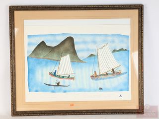 | #51 | Josea MANIAPIK- Eau-forte aquateintée inuite sur papier d'arche, signée et numérotée à la mine, datant de 2006, mesurant 13x22 pouces et titrée The Place Where the World Bends Josea MANIAPIK- Eau-forte aquateintée inuite sur papier d'arche, signée et numérotée à la mine, datant de 2006, mesurant 13x22 pouces et titrée The Place Where the World Bends | SOLD – CAD$ 40.00 | |
