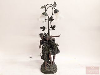 | #160 | Lampe en métal patiné avec abat-jours en verre, mesurant 38.5 pouces de hauteur Lampe en métal patiné avec abat-jours en verre, mesurant 38.5 pouces de hauteur | SOLD – CAD$ 80.00 | |