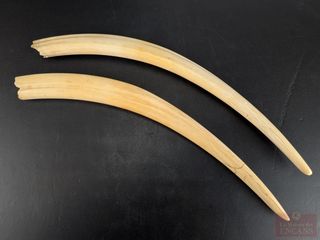 | #27 | Défense d'éléphant en ivoire, circa 1950, mesurant 21 pouces de longueur Défense d'éléphant en ivoire, circa 1950, mesurant 21 pouces de longueur | SOLD – CAD$ 280.00 | |
