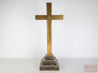 | #49 | Grand crucifix d'autel en laiton doré et argenté, mesurant 24 pouces de hauteur, très lourd Grand crucifix d'autel en laiton doré et argenté, mesurant 24 pouces de hauteur, très lourd | SOLD – CAD$ 40.00 | |