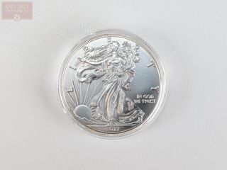 | #228 | Pièce d'une once d'argent pur 999 un dollar Aigle américain 2017, encapsulée, sans taxes Pièce d'une once d'argent pur 999 un dollar Aigle américain 2017, encapsulée, sans taxes | SOLD – CAD$ 75.00 | |