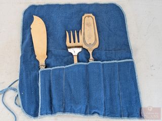 | #196 | Ustensiles nécessaires de service à gâteau, comprenant spatule, fourchette et couteau mesurant 11 pouces de longueur au total, le tout avec manches en argent Ustensiles nécessaires de service à gâteau, comprenant spatule, fourchette et couteau mesurant 11 pouces de longueur au total, le tout avec manches en argent | SOLD – CAD$ 35.00 | |