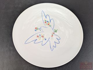 | #28 | Assiette en porcelaine de Limoges collection Picasso, représentant la colombe de la paix et mesurant 9.5 pouces de diamètre Assiette en porcelaine de Limoges collection Picasso, représentant la colombe de la paix et mesurant 9.5 pouces de diamètre | SOLD – CAD$ 40.00 | |