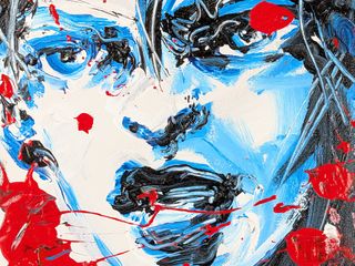 ZILON – Acrylique sur toile signée – titrée Blanc rouge et bleu – 10x10 pouces