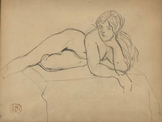 Henri HÉBERT – Esquisse au crayon sur papier mesurant 10x13 pouces avec seau de l'atelier de l'artiste et étiquette de galerie à l’endos | |