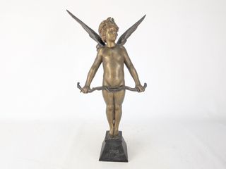 | #218 | Auguste MOREAU - Régule signé à patine de bronze circa 1890 représentant Cupidon, mesurant 17.5 pouces de hauteur avec estampe de la fabrique de Paris.