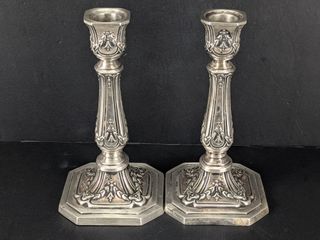 | #219 | Paire de bougeoirs victoriens en argent sterling, poinçonnés, circa 19ieme siècle, mesurant 7 pouces de hauteur