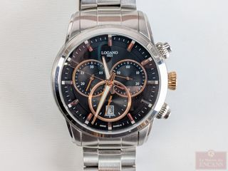 Montre chronographe suisse Logano au quartz – Marque privée – 45mm avec la couronne signée – Autobloquante – Fonctionnelle | |