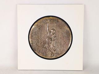 | #32 | Ferdinand BARBEDIENNE – Plaque de bronze signée – Courage Patrie Moralité – mesurant 10 pouces de diamètre