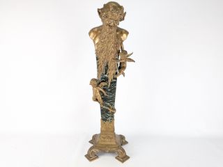 Auguste MOREAU - Régule signé à patine de bronze circa 1890 représentant Cupidon, mesurant 17.5 pouces de hauteur avec estampe de la fabrique de Paris. | |