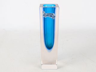 Vase soliflore en verre de Murano mesurant 6 pouces de hauteur avec son étiquette | |