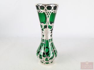 | #3 | Superbe vase art nouveau américain Alvin en verre et argent silver deposit - mesurant 8 pouces de hauteur – circa 1920