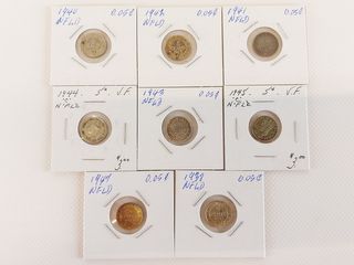 | #226 | Lot de pièces de 5 sous du Newfoundland - 1912 - 15 - 17 - 19 - 38 - 41 - 45 - 47