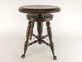 Banc de piano ancien avec pattes d'aigles et billes de verres - 20 pouces de hauteur