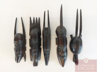 Lot de sculptures africaines sur bois d'ébènes -10 pouces de hauteur