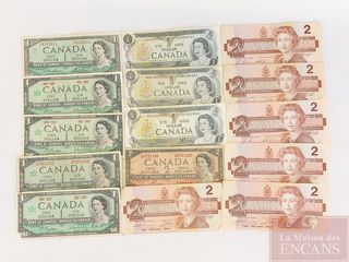 Six billets de deux dollars canadiens de 1986 - en bel état