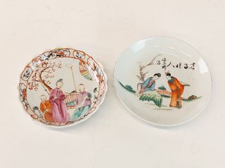 | #39 | Deux assiettes chinoises en porcelaine peintes à la main, l'une avec sceau en-dessous, la plus grande mesurant 5.25 pouces de diamètre Deux assiettes chinoises en porcelaine peintes à la main, l'une avec sceau en-dessous, la plus grande mesurant 5.25 pouces de diamètre | CANCELLED | |