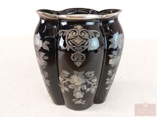 | #142 | Vase en verre art-déco Duncan Miller recouvert d'argent, datant des années 1930 et mesurant 8.75 pouces de hauteur