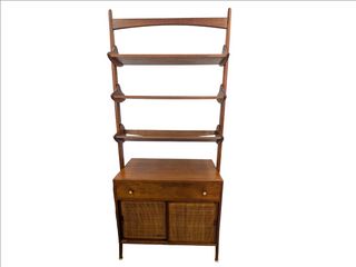 | #63 | Meuble mid-century design scandinave avec tablettes ajustables, finit noyer, datant des années 1960 et mesurant 38x19x87 pouces Meuble mid-century design scandinave avec tablettes ajustables, finit noyer, datant des années 1960 et mesurant 38x19x87 pouces | ||