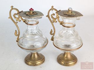 | #35 | Deux contenants pour les saintes-huiles ou eau bénite, datant du début du 20eme siècle et mesurant 5.5 pouces de hauteur chacun Deux contenants pour les saintes-huiles ou eau bénite, datant du début du 20eme siècle et mesurant 5.5 pouces de hauteur chacun | ||