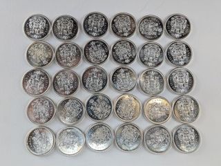 | #215 | Lot de pièces canadiennes de cinquante sous en argent, valeur faciale de 15.5 dollars Lot de pièces canadiennes de cinquante sous en argent, valeur faciale de 15.5 dollars | ||