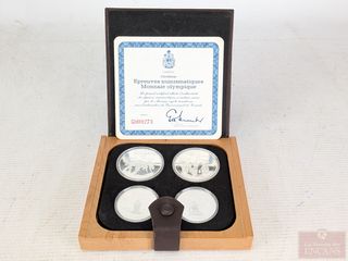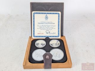 | #233 | Ensemble de pièces canadiennes Jeux Olympiques de Montréal 1976, dans leur coffret avec certificat Ensemble de pièces canadiennes Jeux Olympiques de Montréal 1976, dans leur coffret avec certificat | ||