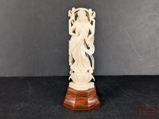 | #236 | Sculpture orientale sur ivoire représentant une divinité, datant des années 1960 et mesurant 5.25 pouces de hauteur avec sa base Sculpture orientale sur ivoire représentant une divinité, datant des années 1960 et mesurant 5.25 pouces de hauteur avec sa base | ||